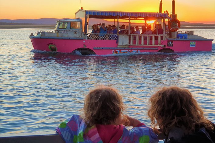 As the sun approaches the horizon, experience the delights of the Town of 1770 and the thrill of our unique amphibious vessels. Take in the magic of Round Hill Creek and Eurimbula National Park coastline with their wildlife and magnificent views while enjoying a LARC! Splashdown and entertaining historical commentary. Our experienced Tour Guides will share with you their knowledge of the fascinating history of our local area, the Birthplace of Queensland. As you travel you may be treated to glimpses of the abundant wildlife including kangaroos, sea eagles, turtles, dolphins and stingrays, just to name a few!