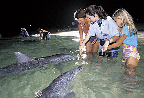 • Hand feed wild dolphins in their natural habitat