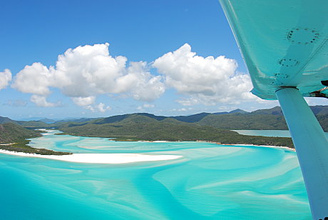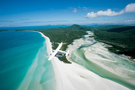 Visit famous Whitehaven Beach in style by seaplane. Flights depart daily and include a spectacular scenic flight over the Whitsunday Passage and a number of islands of the Whitsunday Island National Park group … a sprawling archipelago of jewel-green national park islands that sparkle in an aquamarine ocean … secluded beaches, fringing reefs and towering hoop pines complete the spectacular picture.