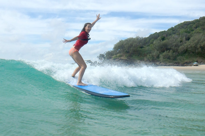 Learn to surf Rainbow Beach in waist deep water with friendly instructors that are highly experienced and fully qualified to get you surfing and having fun in a safe, uncrowded environment. We guarantee that you will stand up on your first learn to surf lesson!